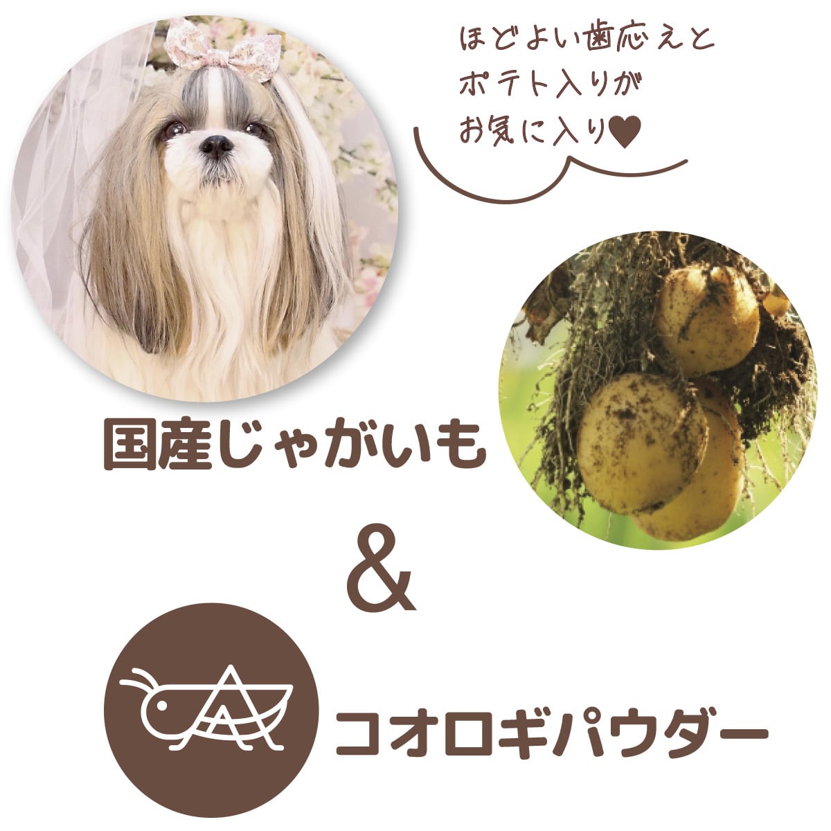 本品に使用されているヨーロッパイエコオロギ粉末は、甲殻類と類似した成分が含まれています。えびやかににアレルギーをお持ちのわんちゃんはお控えください。